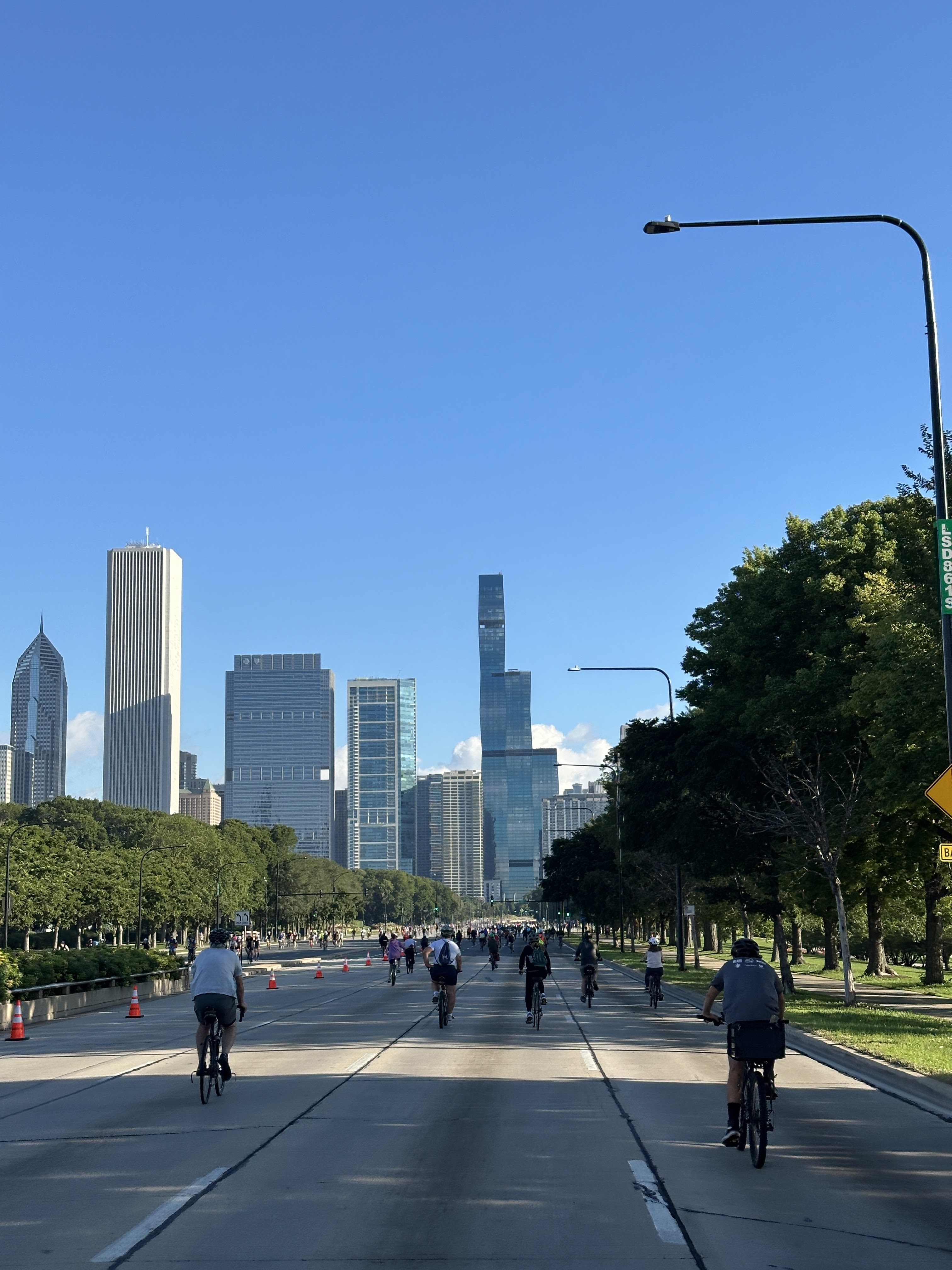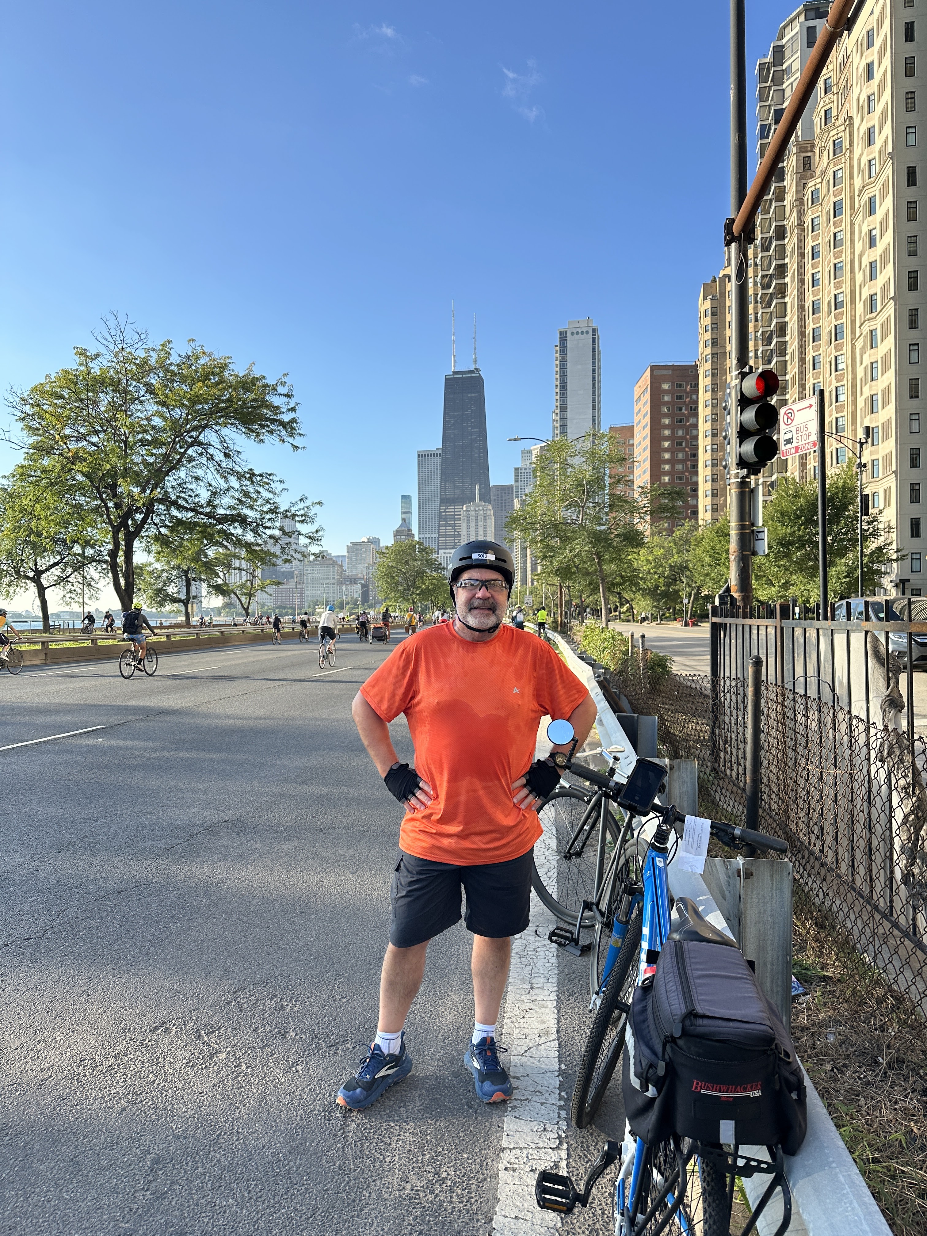 Sunday we were up early and rode to entrances to the northern most entrance to Lakeshore highway for the ride. There were a ton of riders already on the road. We headed south. The drive was relatively flat but each time there was a bridge over a side street you had to go up and over. The bridge over Chicago river was a bit steep but do able. The river was big stopping point for riders for pictures, a bit of a traffic jam there.